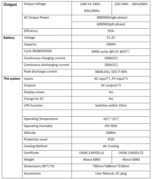 PV max 3KW, AC grid input ( single phase 120v is 1800w, split phase is 2160w)